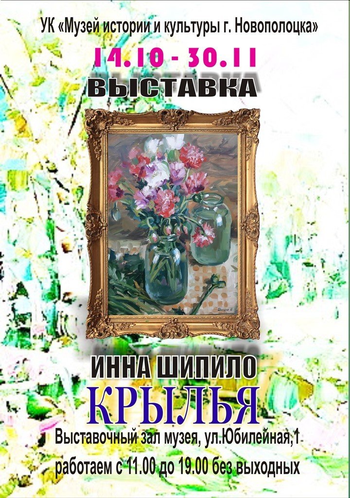 14 октября в 16.30 в Выставочном зале Музея истории и культуры г. Новополоцка состоится открытие выставки «Крылья» новополоцкой художницы Шипило Инны Петровны.